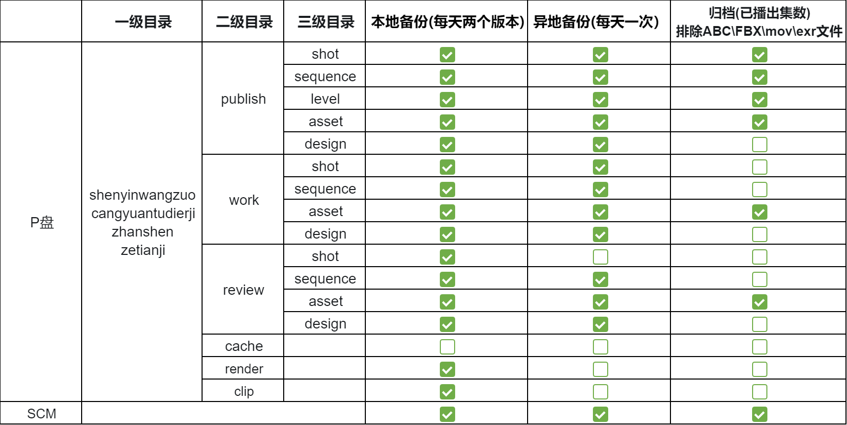 | 动画 | 项目盘:P盘 部门盘:X盘 | 与模型安全说明一致 |