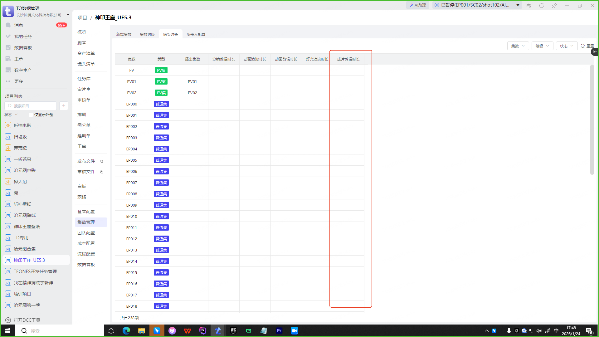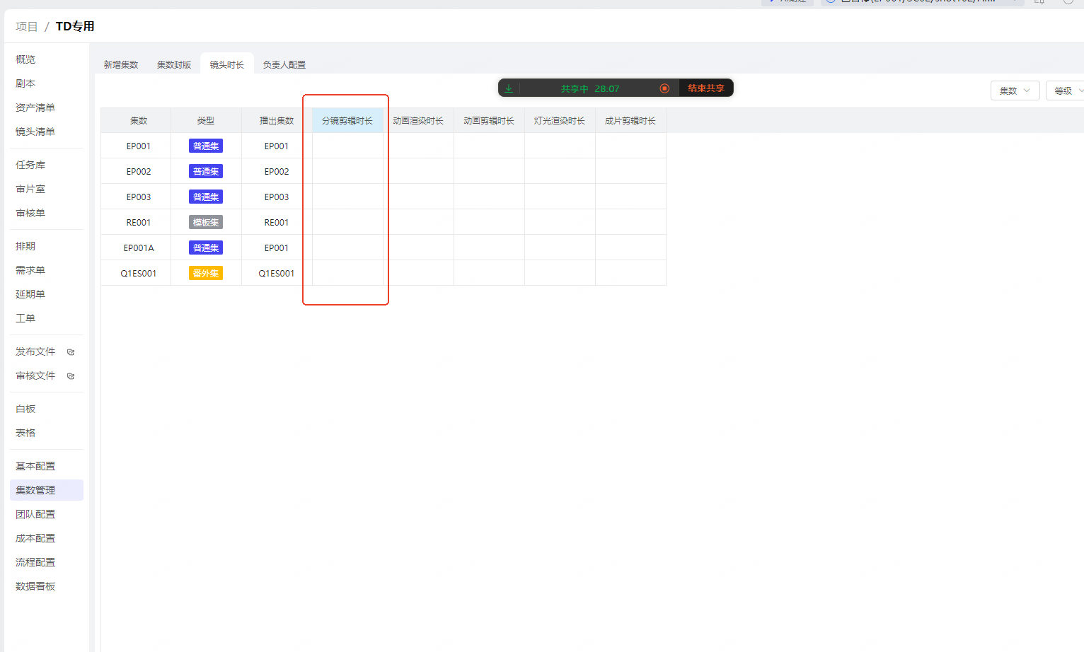 📌 成片时长录入到单集管理