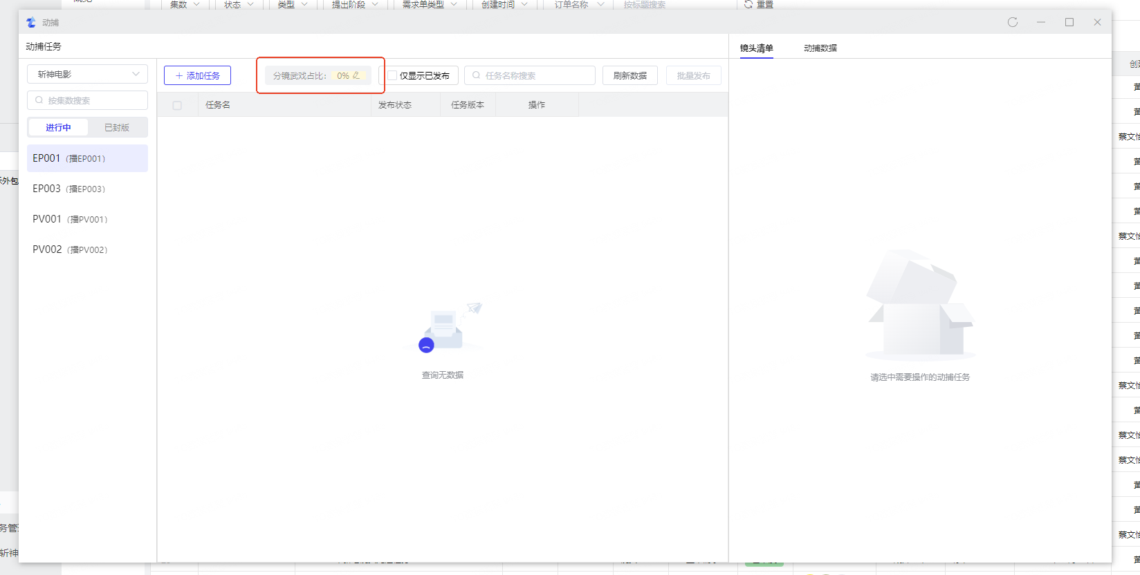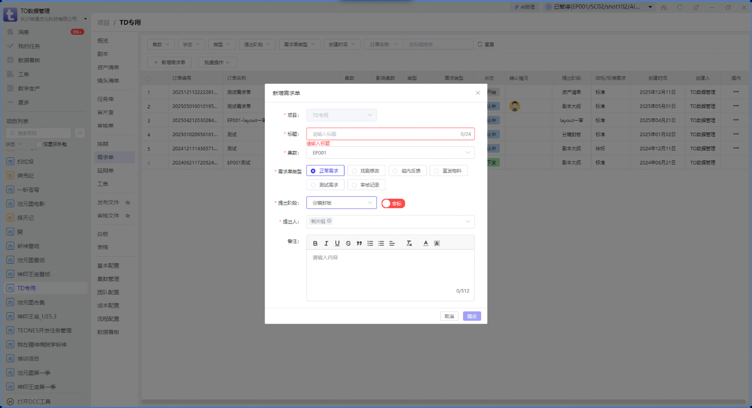 📌 【分镜封板】后一天内镜头内容管理要输出镜头清单,录入单集信息,下发镜头需求单
