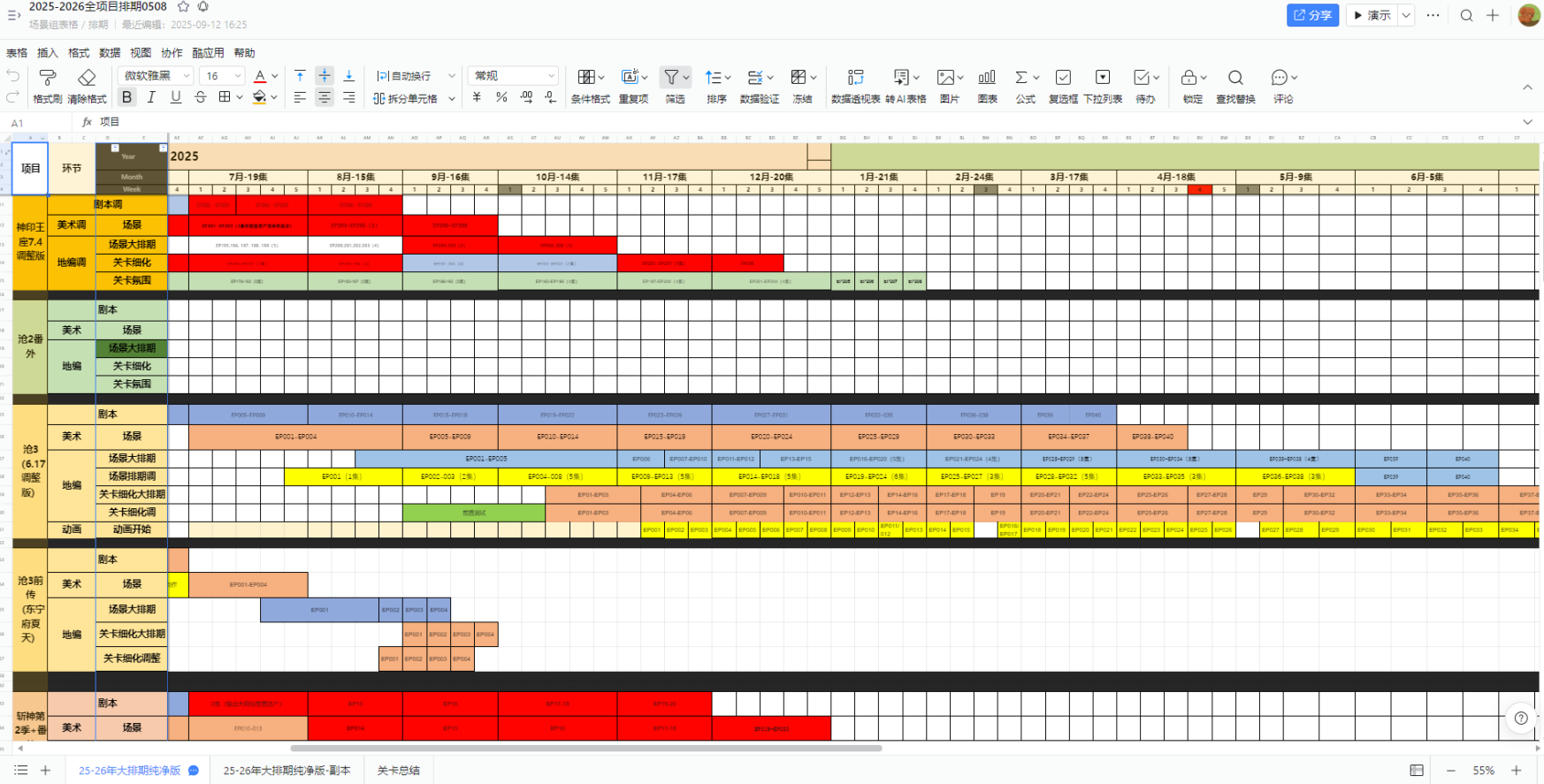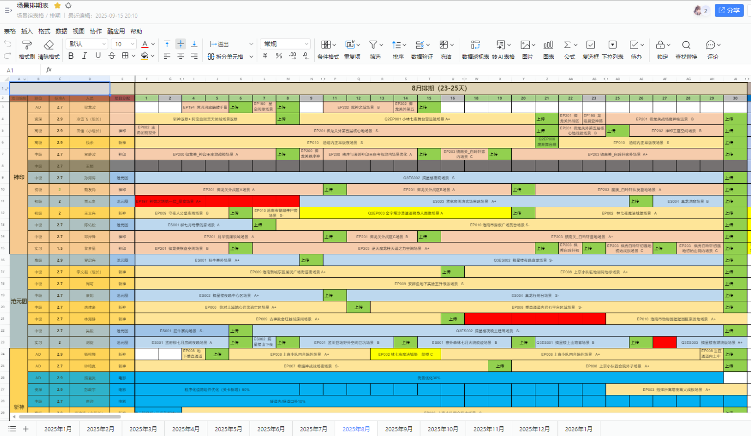 | 1、排期工作内容 | 1、项目排期管理:确认单项目大排期上游交付时间和下游开始时间的衔接是否合理,单月每个项目的集数是否在产能区间之内,将项目排期汇总后整理好单月所有项目的集数,确认组内产能是否可以承接,是否有需求超标及空转情况,空转情况可根据上游美术时间安排赶产或承接分公司项目需求,单月集数需求量超标及时预警,如果无法在大排期当月平摊,则需及时走财务超标申请 < br12、至少提前一个月核对下个月大排期任务集数及单集任务,和 AD、AM 组长对齐任务等级,在每月月底前结合组内人员 KPI 及组员自身情况提前分配好下个月的具体制作任务,做好 TO 分配、工时登记,并跟进单任务交付情况,对延期任务及其他交付异常任务上报组长做好异议问题处理,确保项目按排期交付 < br13、标准流程新增、返修及非标新增 / 返修,前置测试等单任务跟 AD、AM 对好需求后,结合上下游排期确认交付时间,确认好需求单后及时下发内部任务并跟进交付情况 < br1 | ![]() |