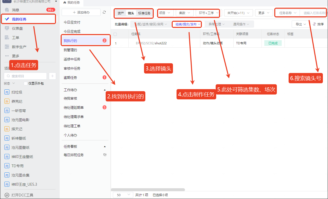 任务开始的时候,直接从TO的任务栏里,找到对应的场次镜头