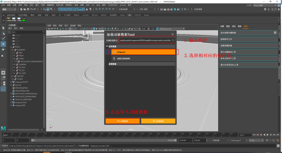 输入动捕数据所在路径(服务器对应的任务会自动指认到对应的路径,若有其它路径的动捕数据需求或无法自动指认,则需手动输入)