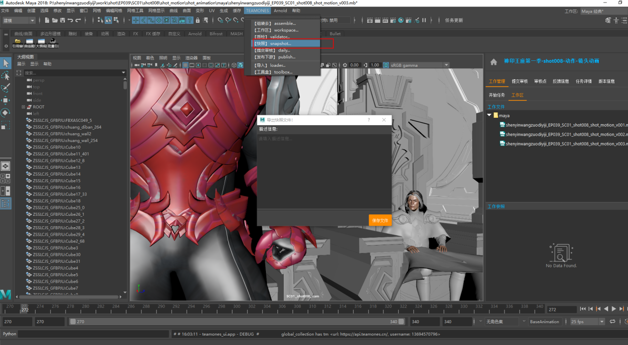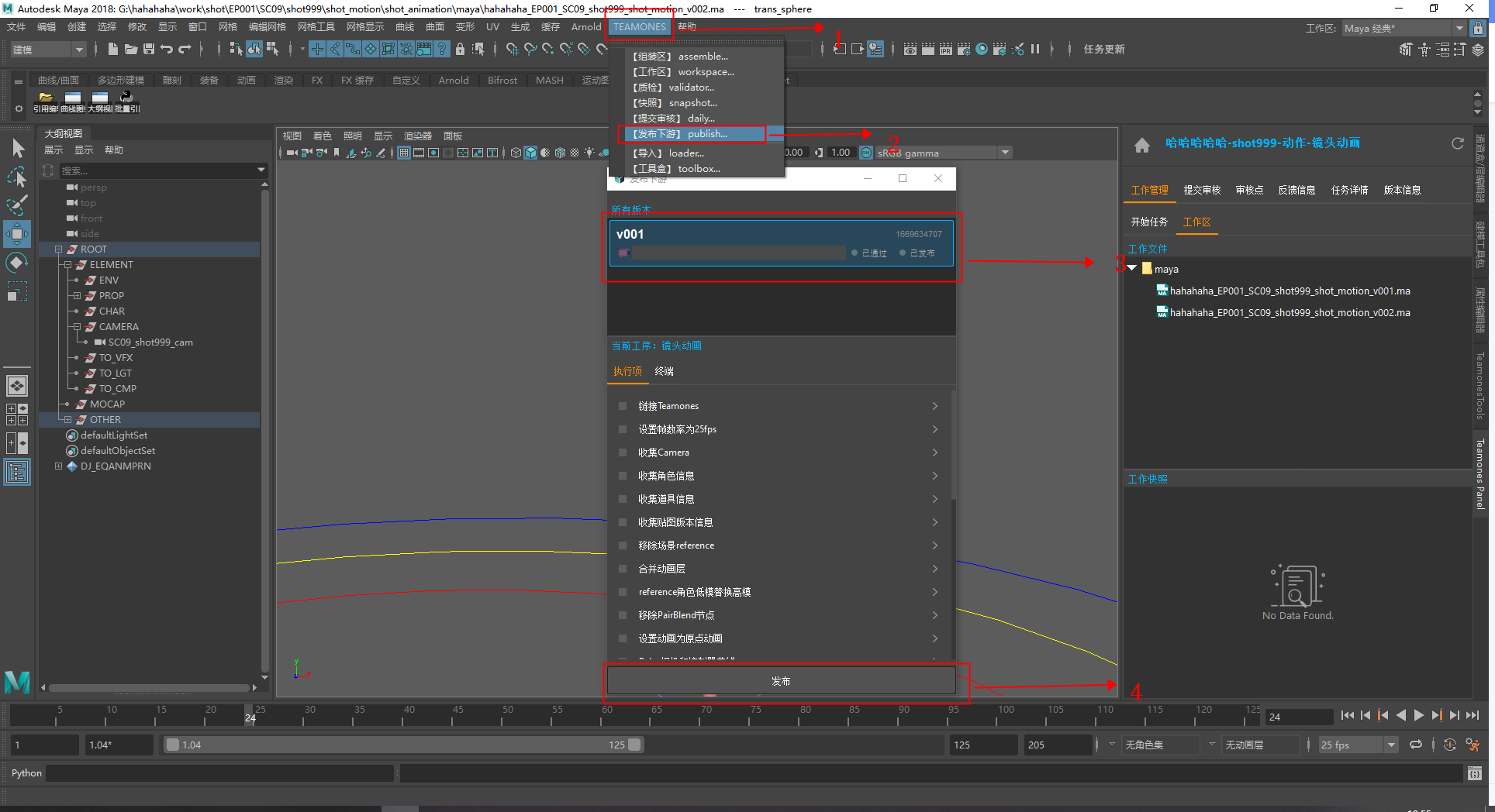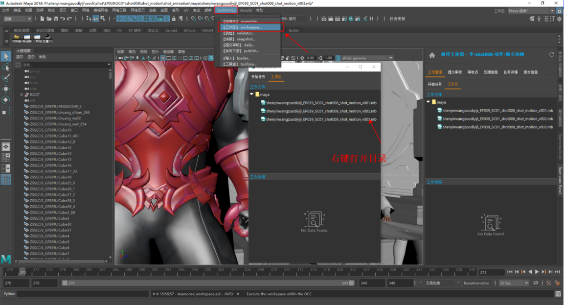 TO在为你启动maya的同时,会自动为你加载该任务所需要的角色、道具、相机