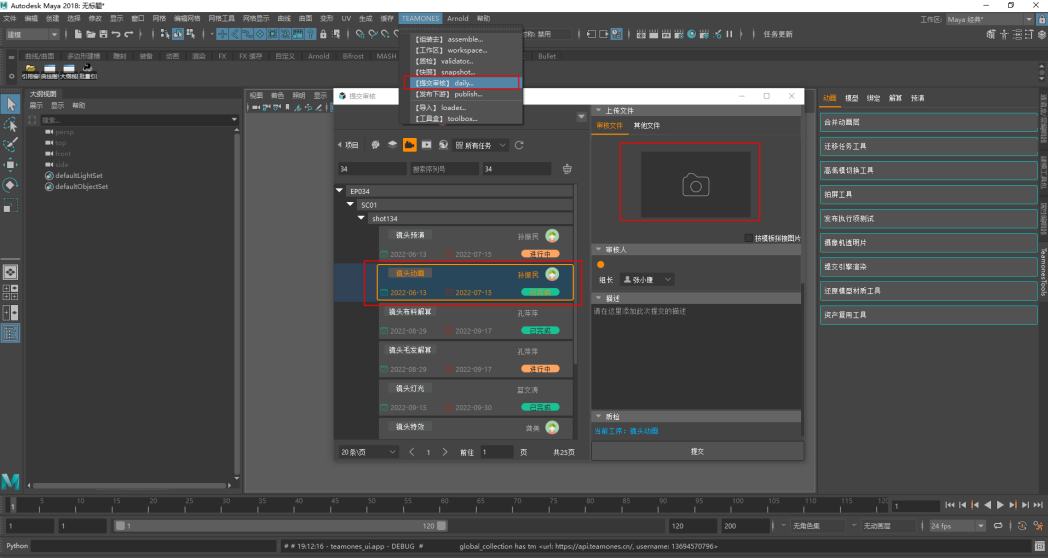 下图为第二种提交审核的方式,也就是打开TO进行提交审核。这种方式一次可以提交多个镜头进行审核。一般来说就是批量提交审核,使用TO批量提交审核服务器会自动帮忙拍屏,不需要自己另外拍屏。