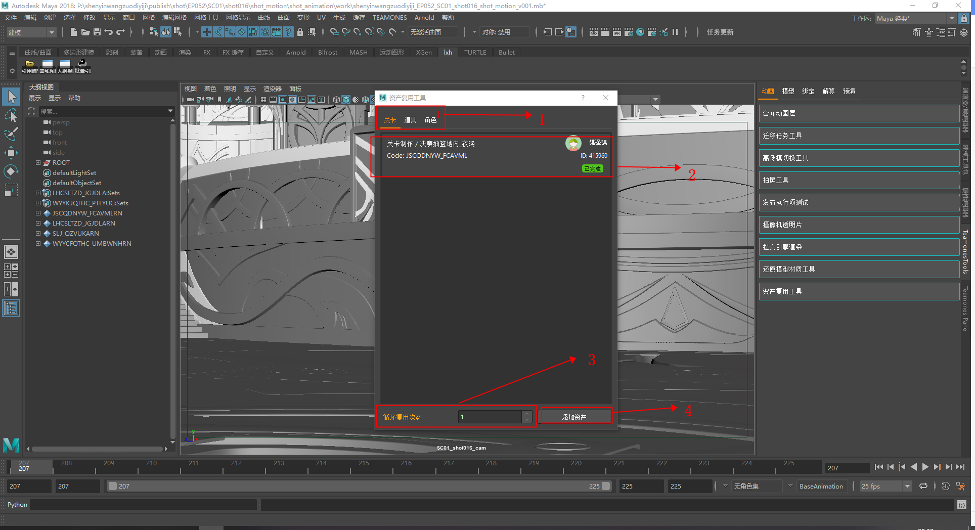 在制作过程中,如果出现新增资产也可以用此方法导入,如果“资产复用工具”里没有相应的资产或没有相应版本的资产,则需上报组长和制片。
