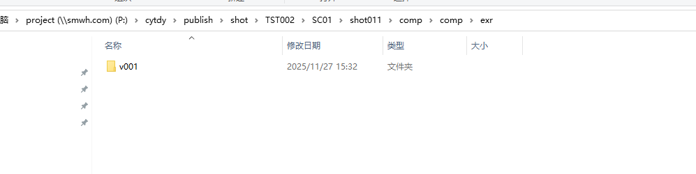 如:P:\cytdy\publish\shot\TST002\SC01\shot011\comp\comp\exr\v001