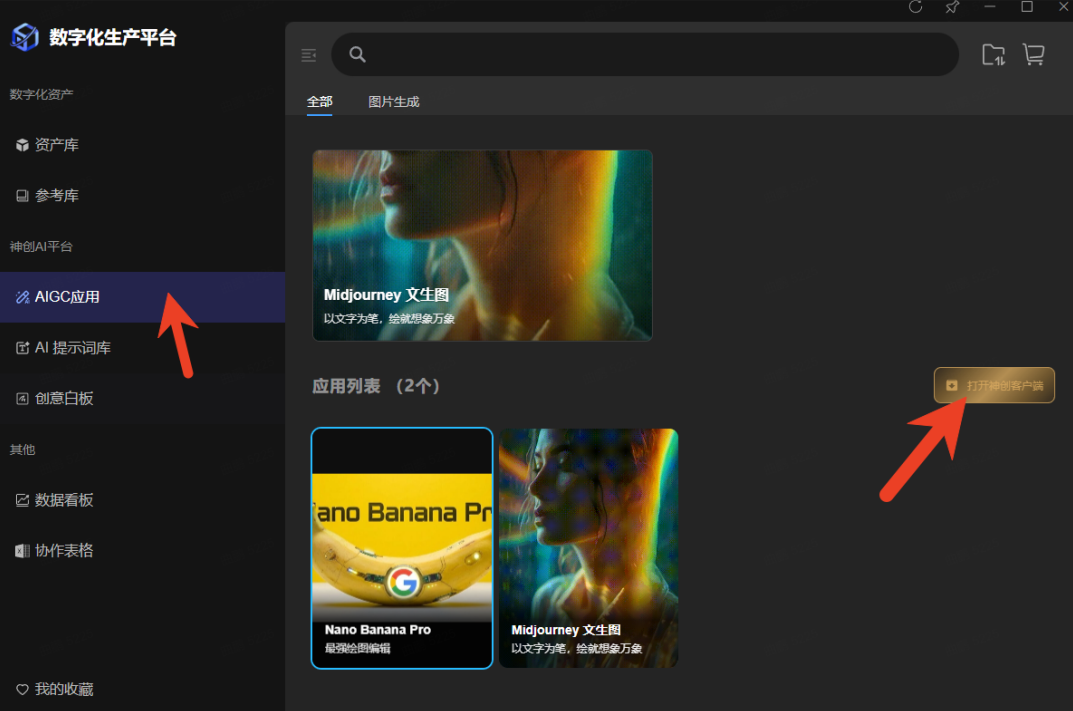 3、打开TO点数据生产,在点AIGC应用中的打开神创客户端进行安装打开即可