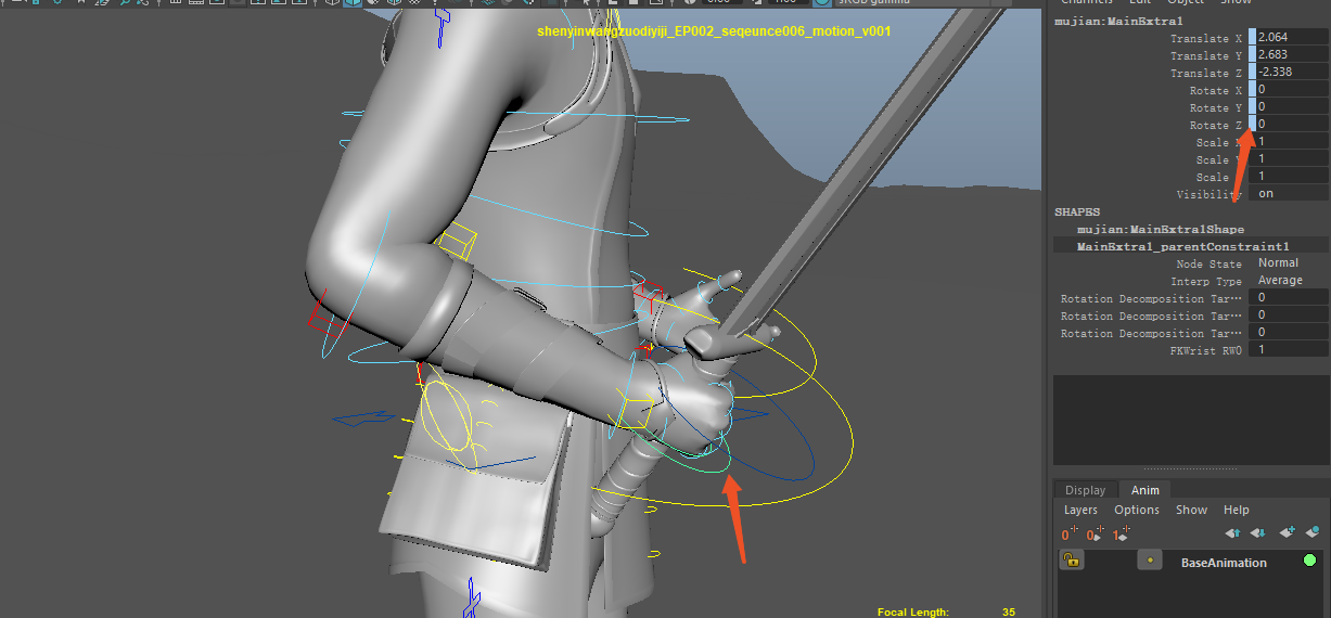 文件的MB 命名:shenyinwangzuodiyiji_EP001_SC01_shot001_shot_motion.mb