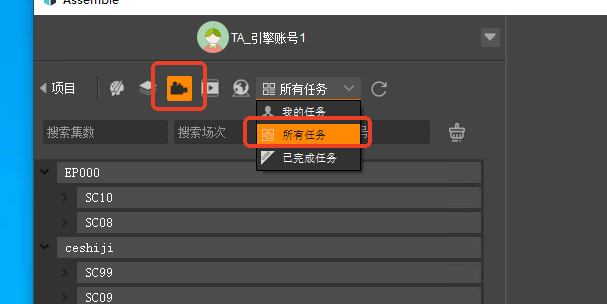 a. 选择项目后,点击所有项目,选择摄像机图标