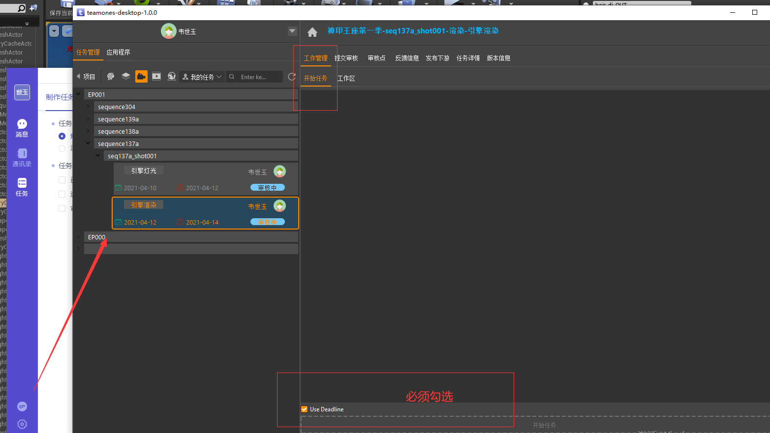 打开Teamones插件,选择对应的场次镜头号,截图提交镜头单帧审核,每个镜头提供1-3图片单帧审核(根据动画运动幅度)