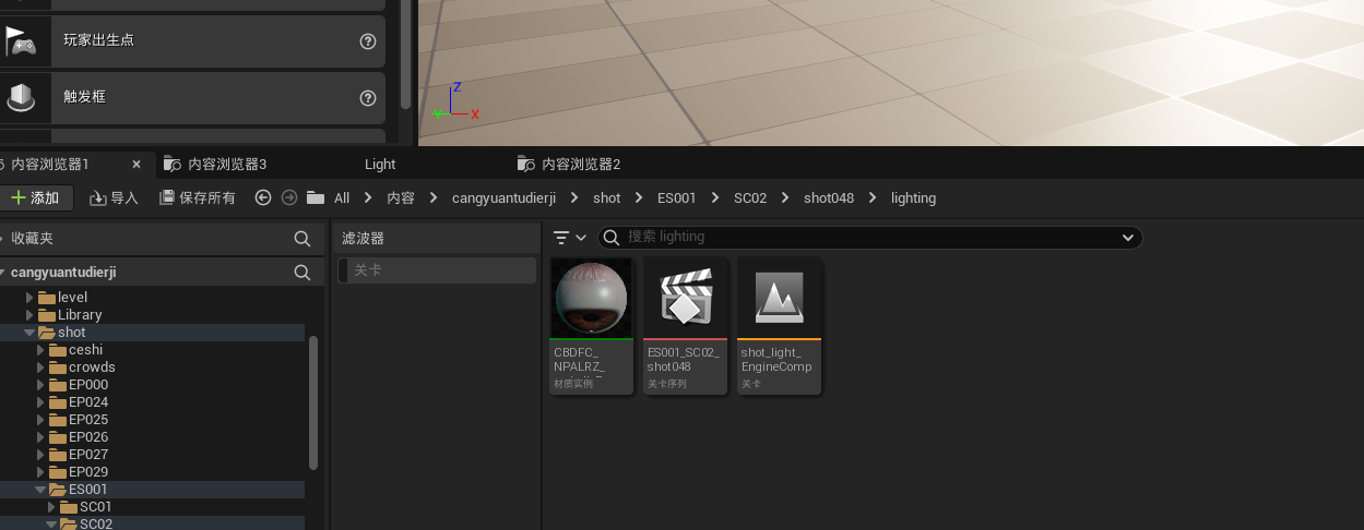 此系列操作意义为,在一个镜头序列中存在多个子定序器时,每个子定序器有单独一套的灯光,只在此子定序器内使用,多个子定序器可以创建多套灯光,避免多定序器使用一套灯光出现照顾不到的情况,也可以减少资源消耗。