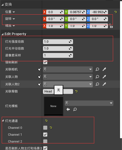 灯光强度倍数,灯光半径倍数,采样,通道;