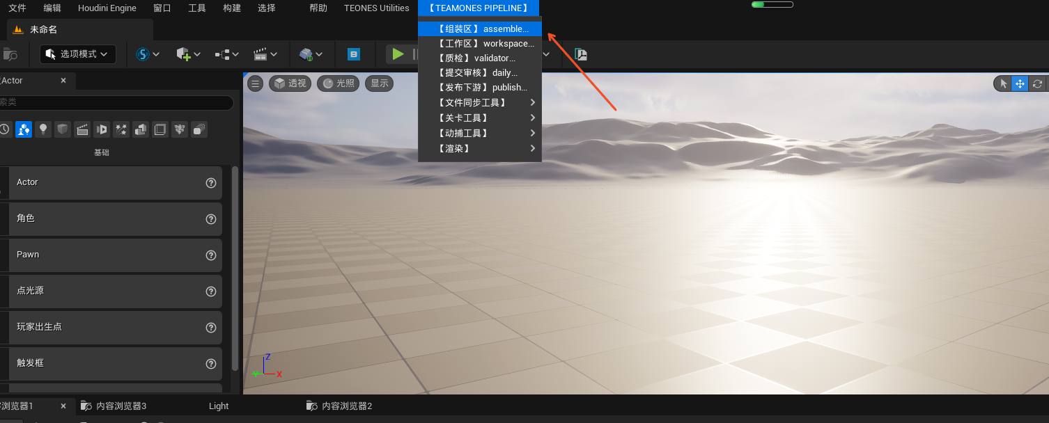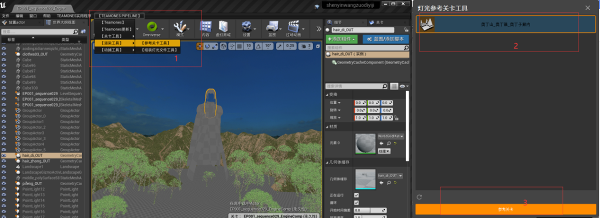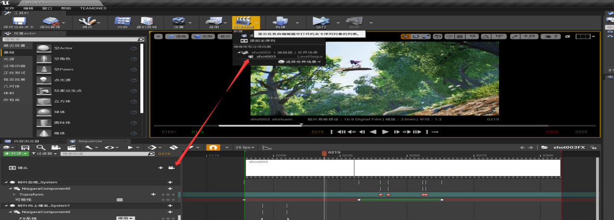 - 添加场景关卡:打开镜头关卡之后,使用Teamones插件自行添加场景关卡。