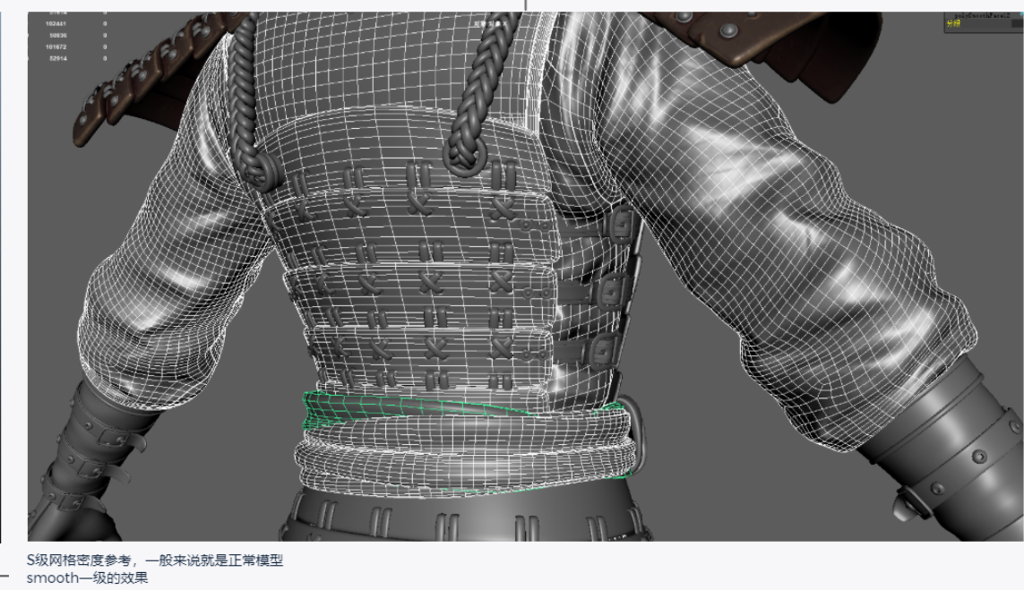 S级角色不要超过40万面,特殊角色除外。如有smooth历史要保留。可以根据角色的复杂程度和制作等级适当增加或者减少面数,要保证模型表面光滑不要有棱角。