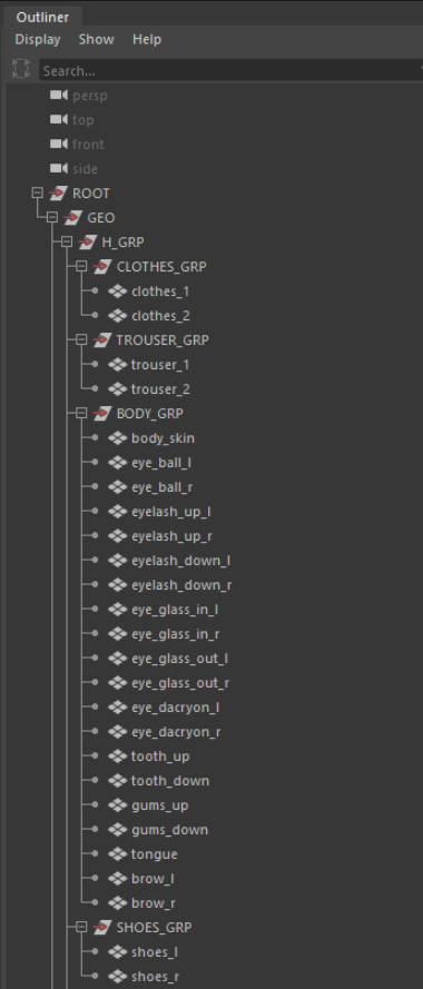 每个主要角色服装模型的细节制作必须左右不对称,当然,可镜像后再行单独制作修改。部分次要角色的模型可以根据其设计要求对称制作但也必须通过贴图纹理来制作出左右不同的细节。