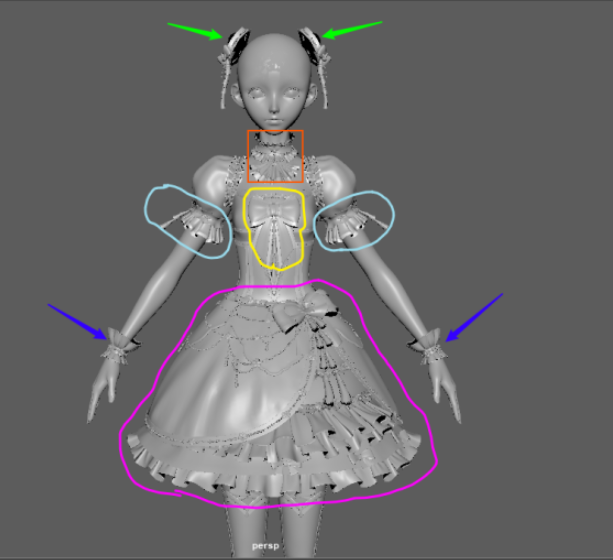 服饰材质球数量不能超过15个,基本需要控制在10左右,一个角色材质的总数量最好不要超过30-35个材质球。