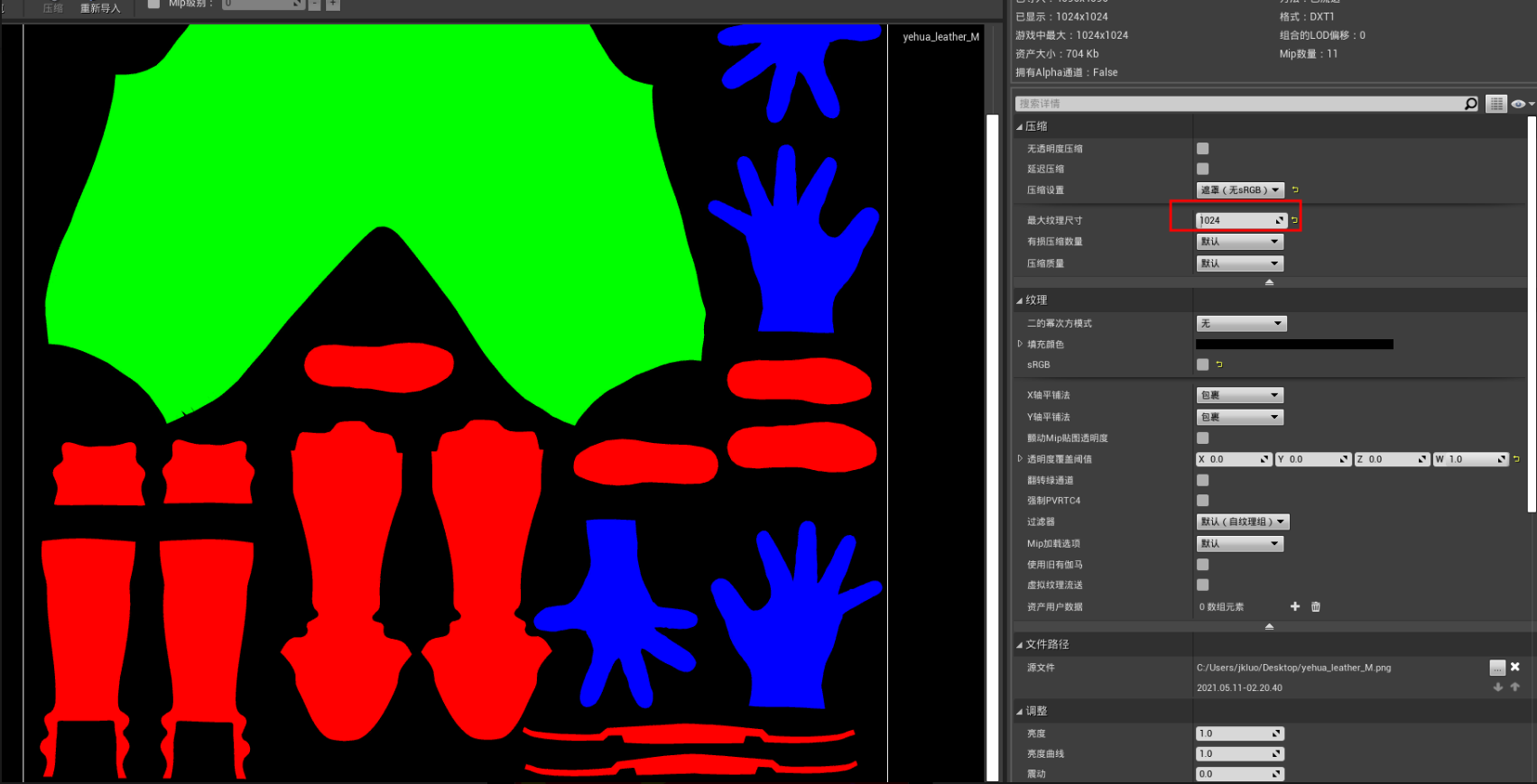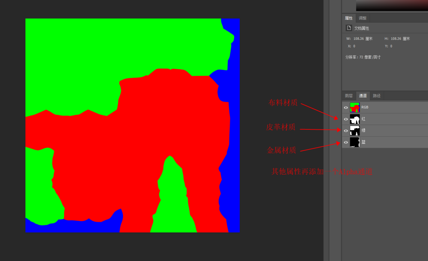 最终提供的MaskId贴图必须是红绿蓝颜色不可有其他颜色存在。(布料部分红通道、皮革部分绿通道、金属部分蓝通道、其他属性用Alpha通道)