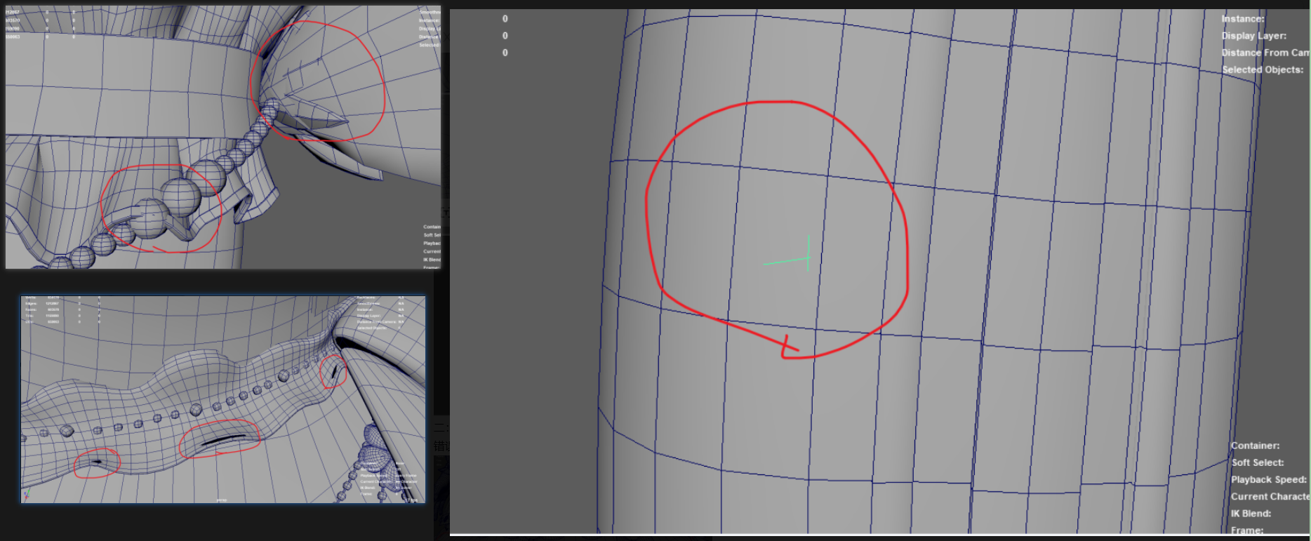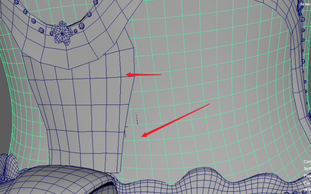 注意模型的表面结构之间,衔接处位置,关节处位置,多层结构位置