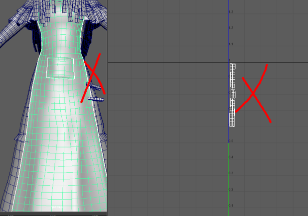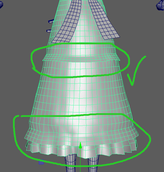 模型边缘有附加模型包边的部分可以使用单面进行制作。(例如裙摆,袖子等边缘被包边模型包裹的部分)