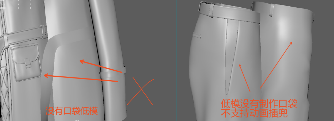 S/A级角色有表演交互的部件需要制作低模提供给动画:口袋 系带 等。