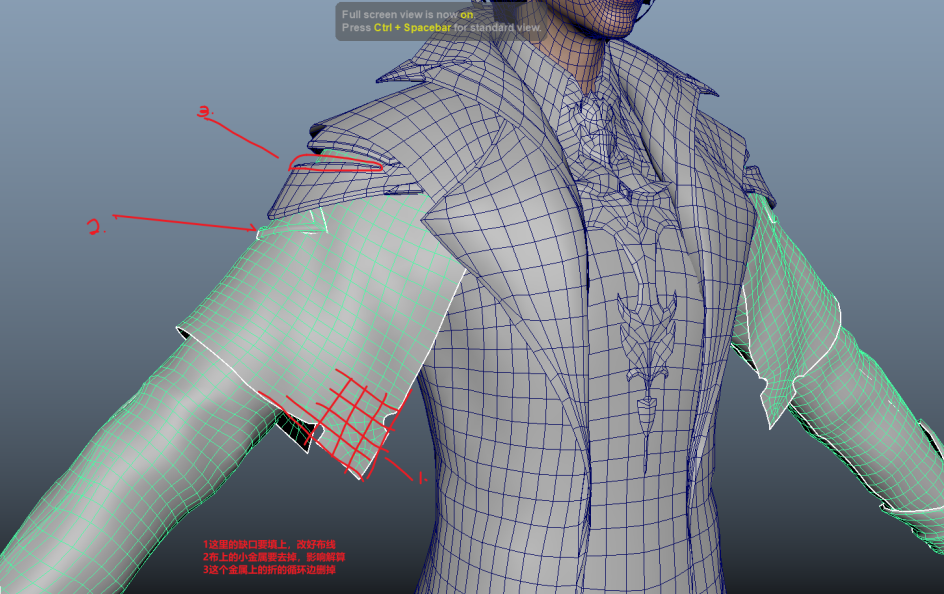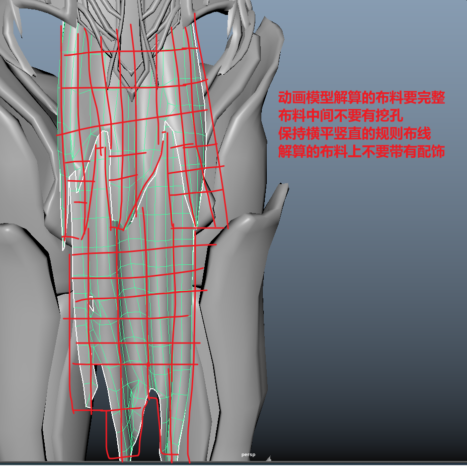 破损的披风 披肩 动画模型保持完整性不能带有破洞 布线要规整.