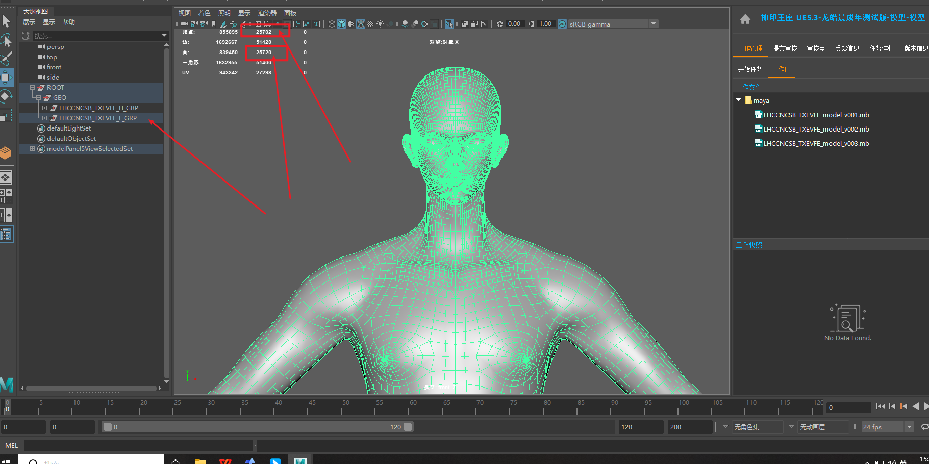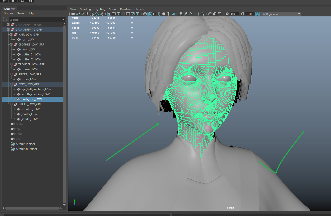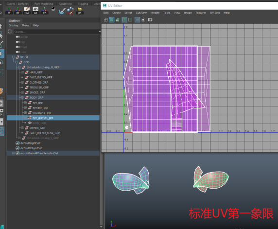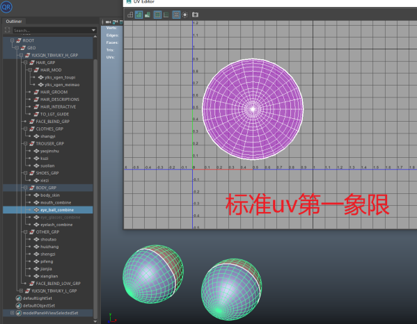 动画模型后缀要手动添加_LOW,动画模型的大纲层级和高模一一对应(眼球,口腔,xgen毛发除外)