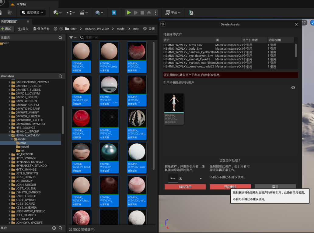 引擎阶段自动生成的材质批量删除,制作完成后清除多余材质及贴图。