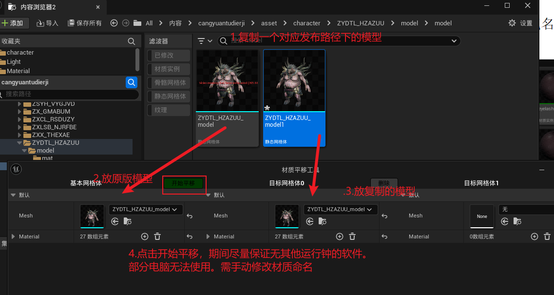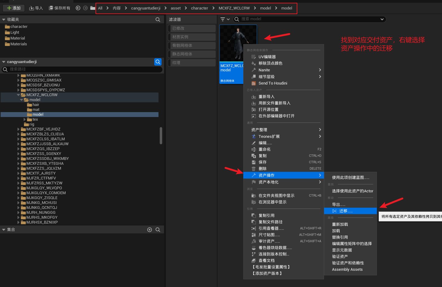 不接受线下迁移文件,线下文件由引擎环节制作。后续可以提供给模型环节线下调整(仅允许改动粗糙度和金属度和法线强度,眼球除外),线下迁移路径不得改变