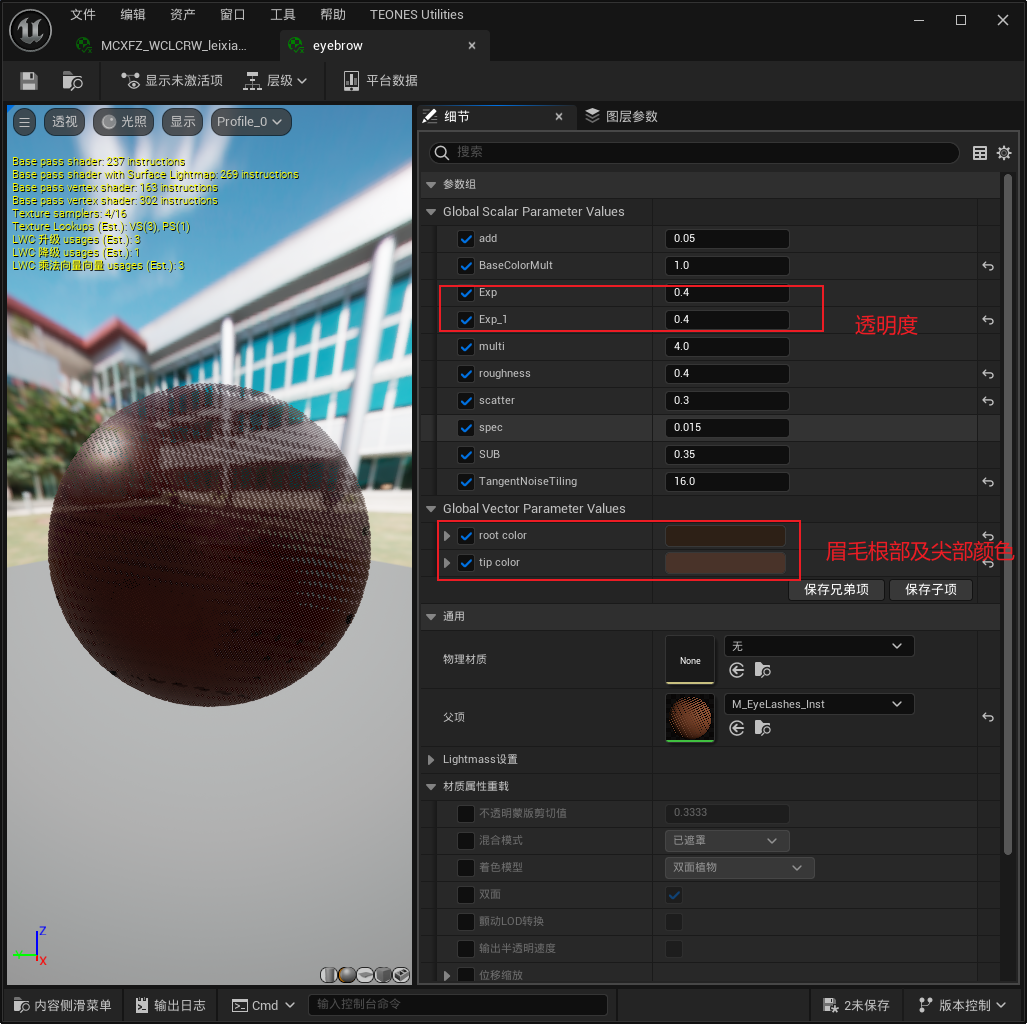 动画模型需要画眉毛。S、A、B级资产的眉毛需要有实模,放去动画模型阶段上传,只给动画和绑定看(如图)