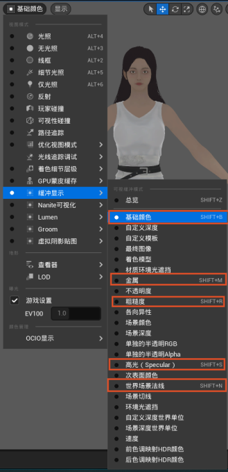 分别切换到基础颜色、粗糙度、金属度、高光、法线通道查看是否有接缝,粗糙度金属度是否合理,符合物理特性;以及查看是否有穿帮、穿插等问题;无问题后渲染出给审核组。