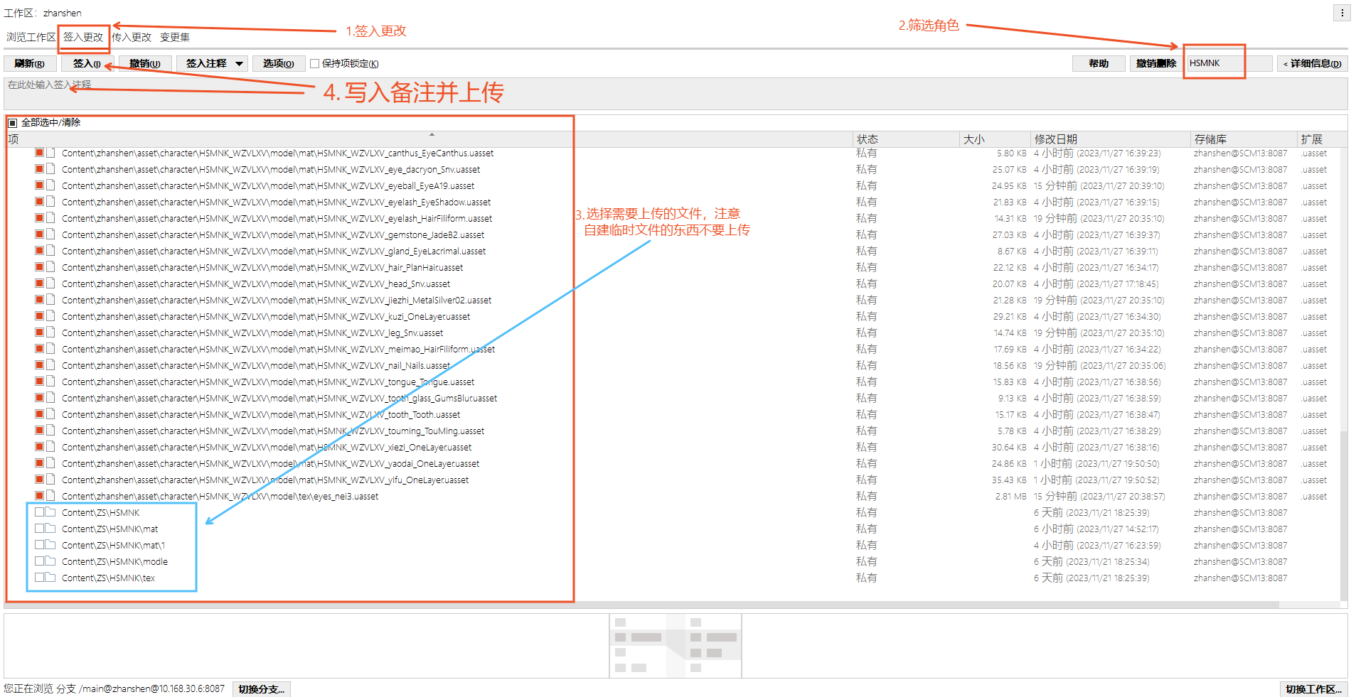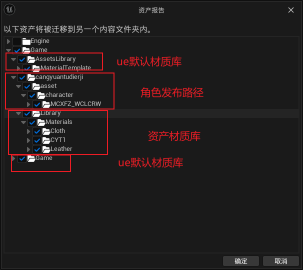 以当前资产为例,资产报告内为占用文件。初始版本资产需保证除材质库外。无本地占用、无不想关角色资产占用。(衍生版可以占用原版)
