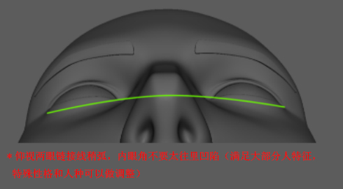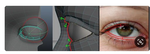 眉弓的五星点要在眉毛前面偏下的位置,可以做皱眉表情,上下眼皮的布线数量要求一致并上下对齐呈放射状闭合环线