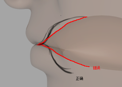 嘴唇布线呈闭合环线并且上下布线数量一至