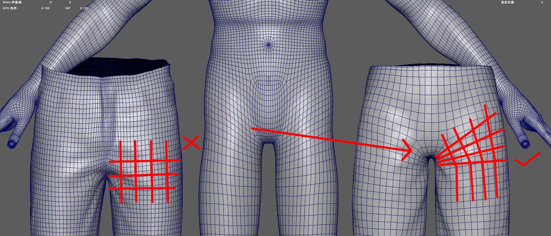 裤子布线尽量按里面人体布线走,不要走横平竖直的布线。