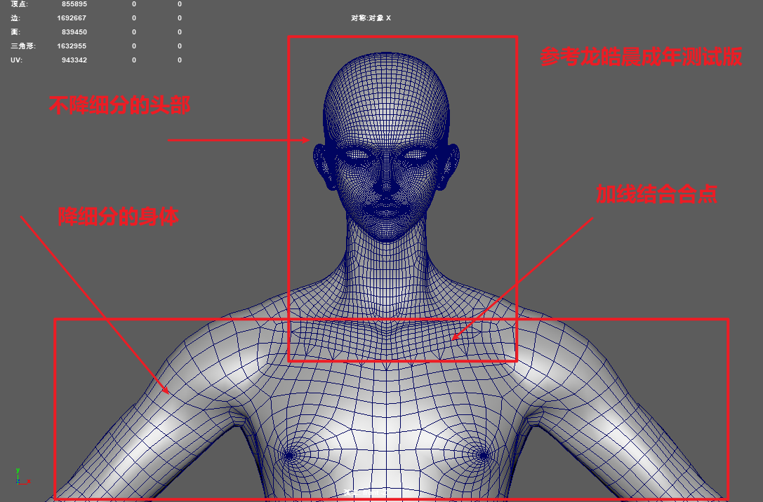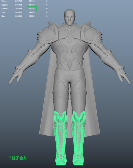 S、A级(包括其衍生版)身体部分需要去ZB后退一个细分等级(重建细分),头部使用高模,结合到一起,用作低模;B、C级身体保持53544个面不需要改变。(注:合并顶点的时候不要使用目标焊接)