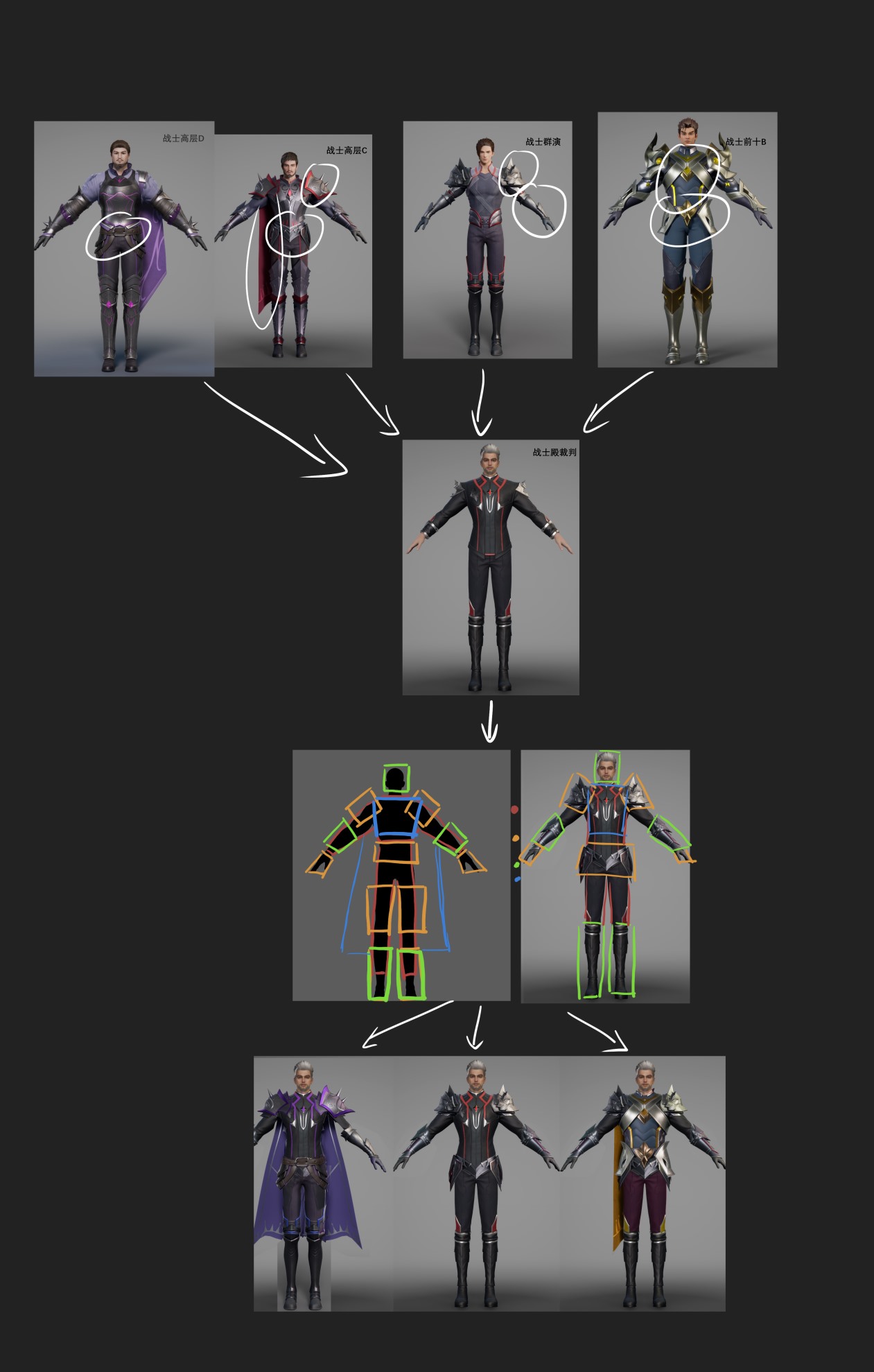 ①带伤口的衍生版,需在贴图阶段给低模(动画模型)对应的部件提供伤口贴图