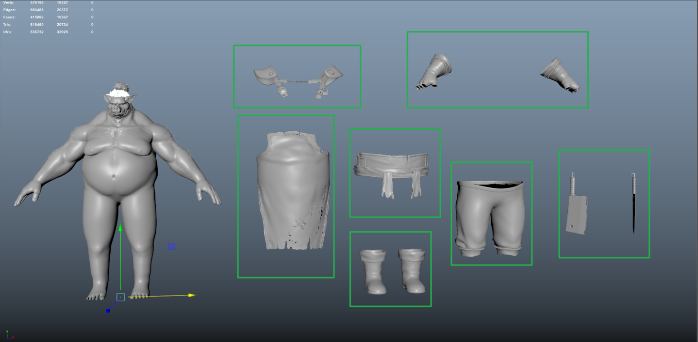 模型整合阶段,需要重新定义合并的mesh,按身体关节区域划分。