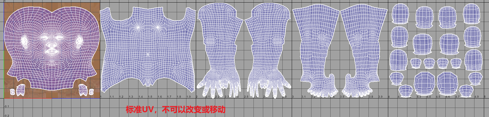 身体和脸部模型、眼睛、牙齿的UV使用项目提供的标准版本,不能进行任何改变。