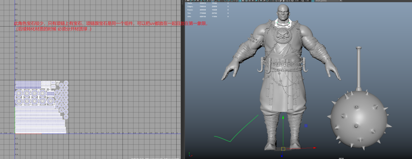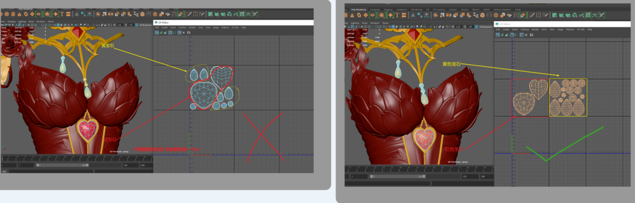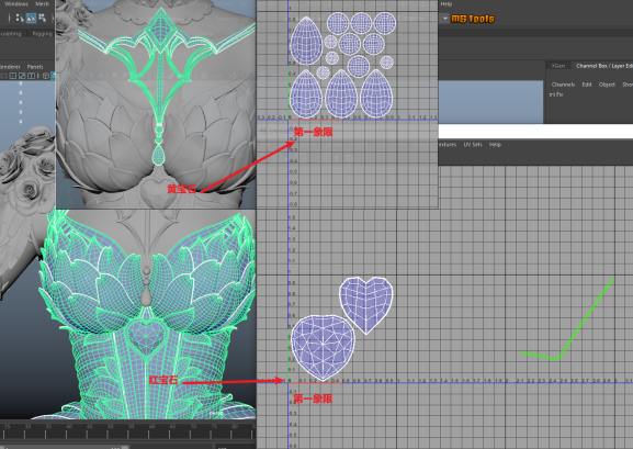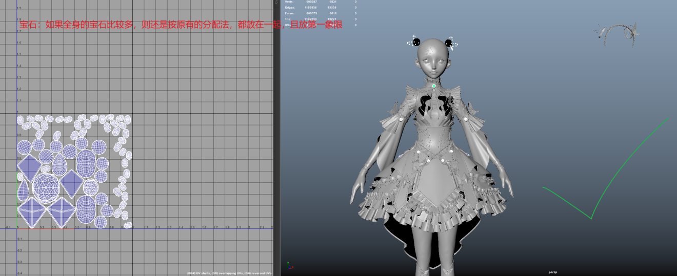宝石类的单独UV(不同颜色的宝石也要单独UV),宝石类uv必须放在第一象限。