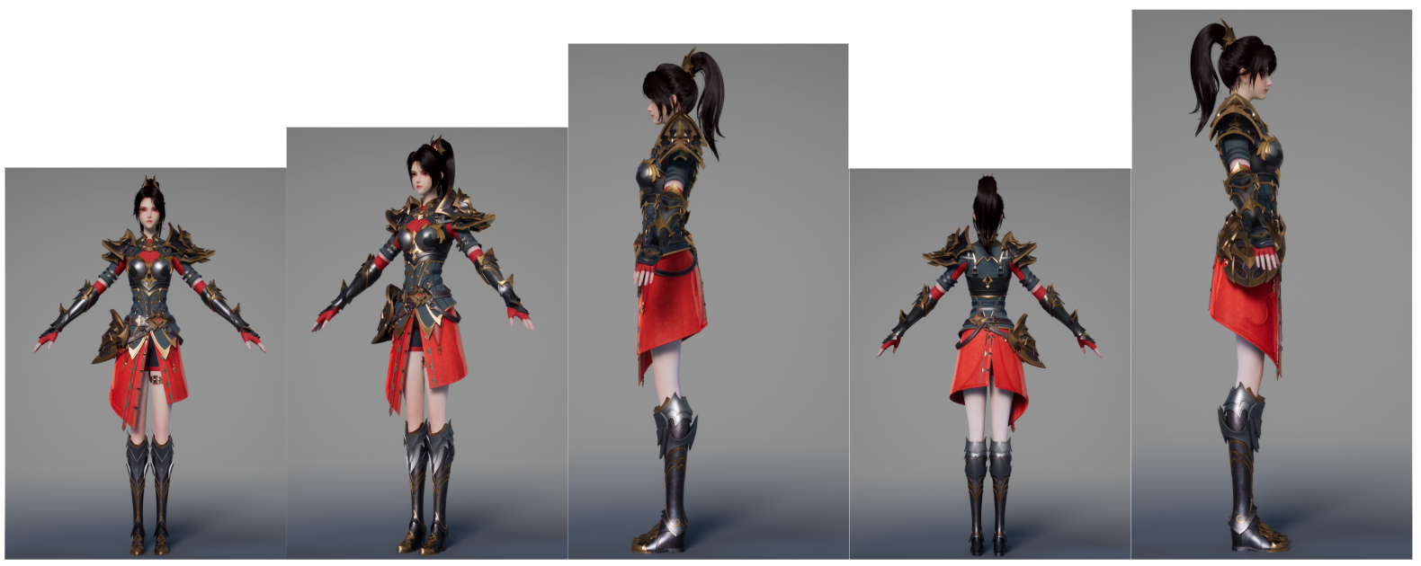 ④白天、夜晚、黄昏、清晨等环境下与参考角色的对比图