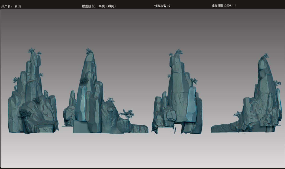 4,截图审核: 渲染基础白模效果,包括四视图+其他有重要戏份或需要单独展示的视图。