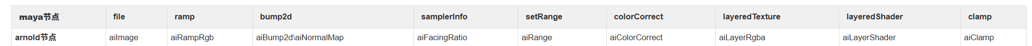 除指定节点以外,请使用arnold自带节点,常用的maya节点请使用对应arnold节点进行替换,仅置换贴图可使用maya的displacementShader