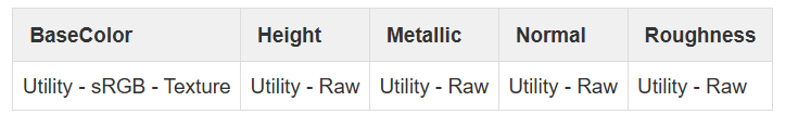 贴图色彩空间所有image贴图需设置好对应的颜色空间,(有颜色的为Utility - sRGB - Texture,灰度图为Utility - Raw,法线贴图使用Utility - Raw)