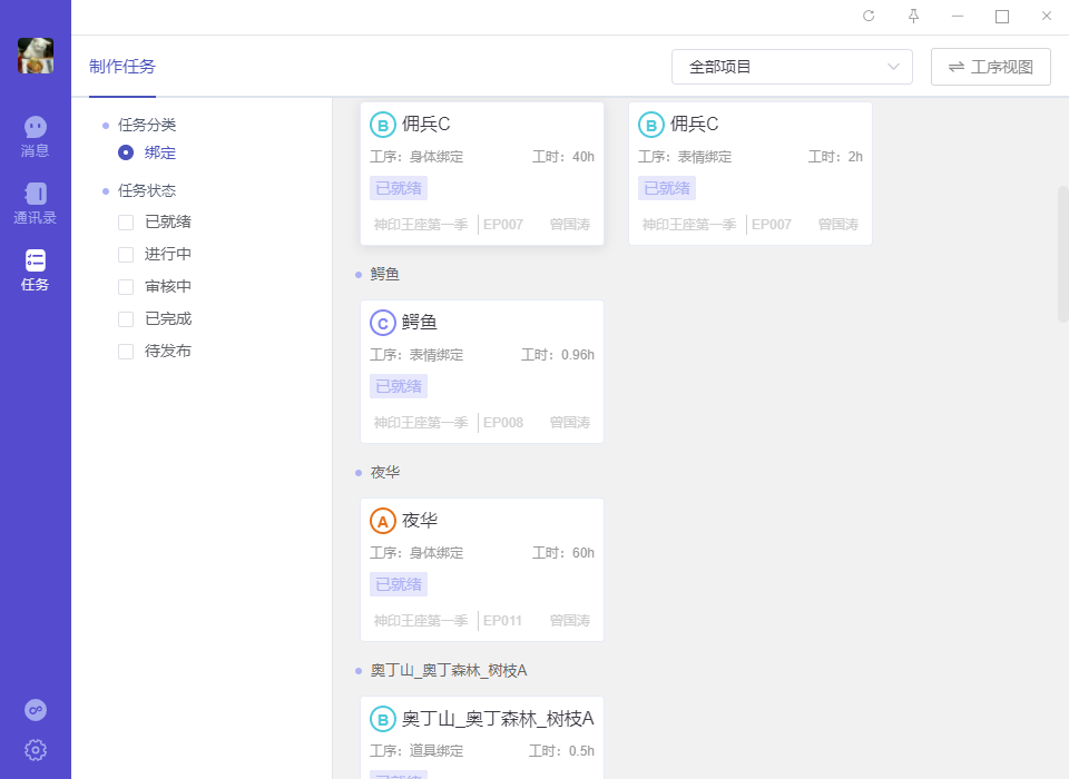 点击开始任务进入任务 稍后会自动打开maya并把任务需要的模型等导入好,同时你的任务会从已就绪变成进行中