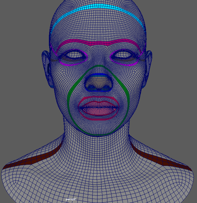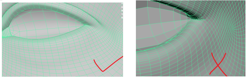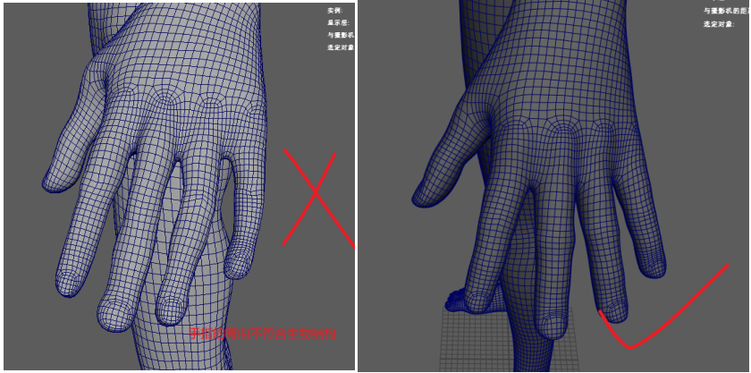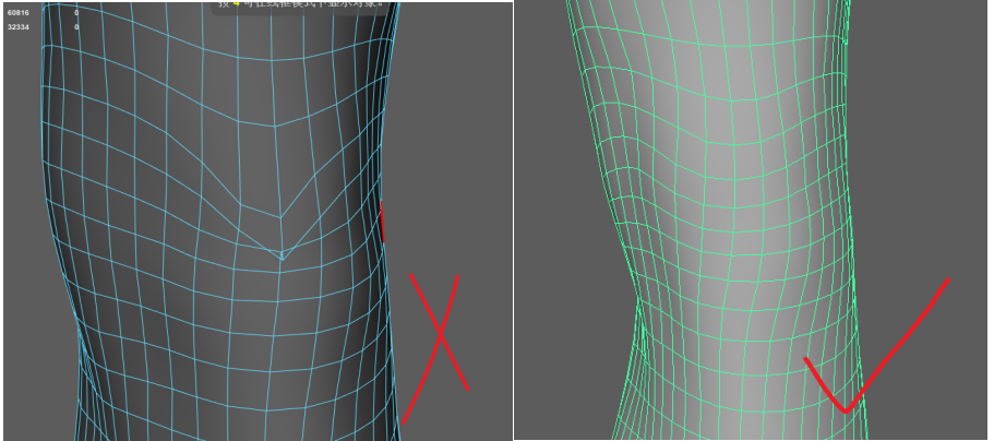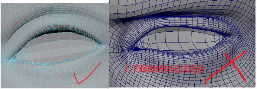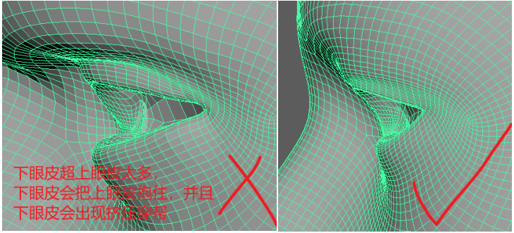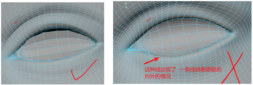 (1) 布线顺滑,不能有褶皱(如果按照错误的制作,眼睛权重计算会出错) 如图: