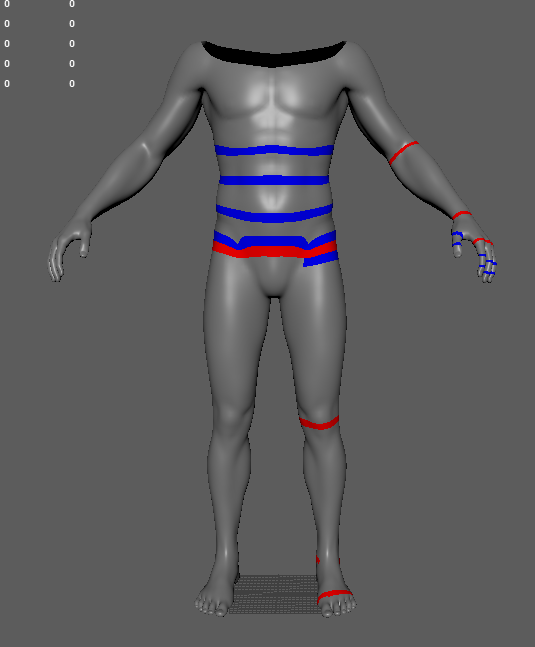- 模型整合阶段,需要重新定义合并的mesh,按身体关节区域划分方便解算 错误例子: