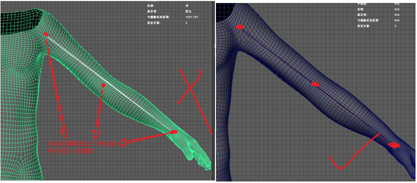 正视图中,手臂,手肘与手腕三者的中心点要在一条线上 如图: