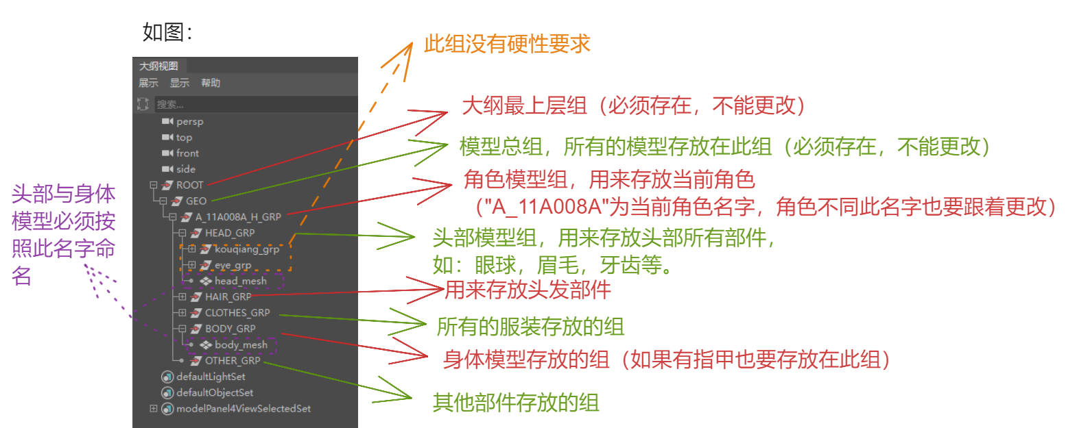 - 网格标准可参考MetaHuman_ID(全身)基础网格标准.mb文件(身体、头部)