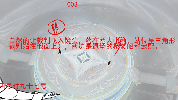 53,197镜头裁判的姿势太轻佻,麻烦按照前面的调整,让裁判手握屏幕看向龙皓晨