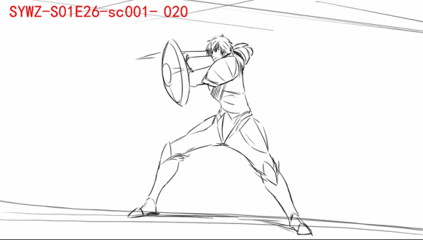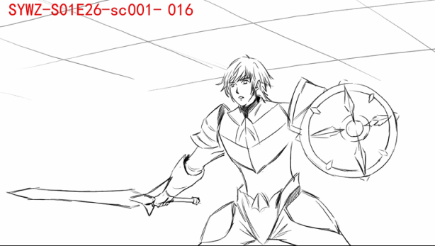 10,016镜头该部分龙皓晨姿势根据013镜头龙皓晨变出剑盾的姿势对称